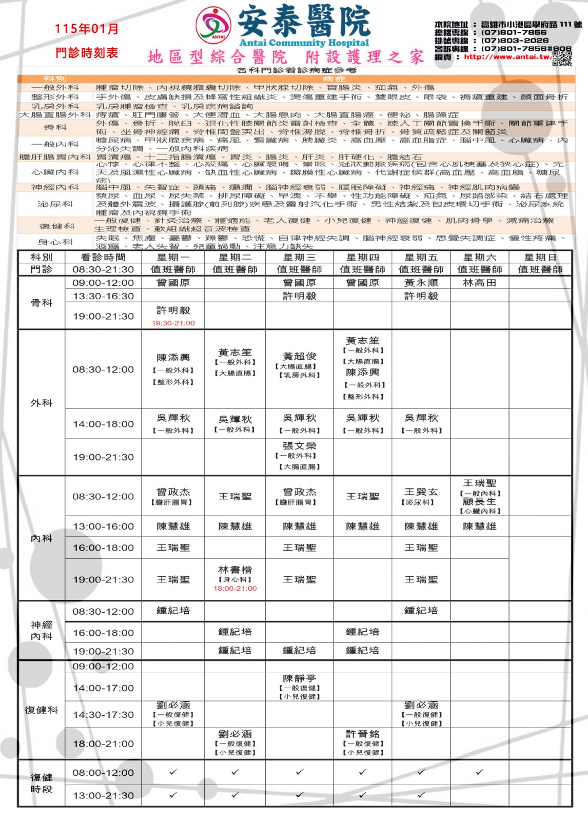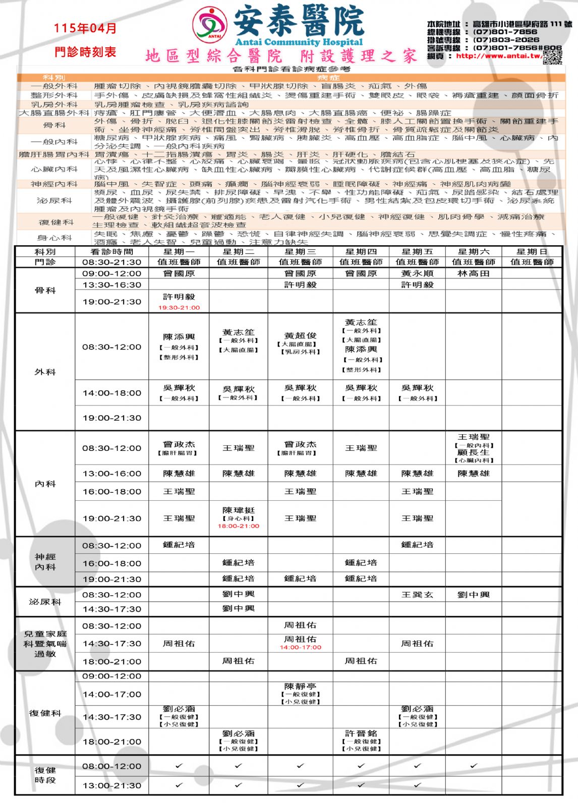 ♦復健諮詢:(07) 801-7856#213、214